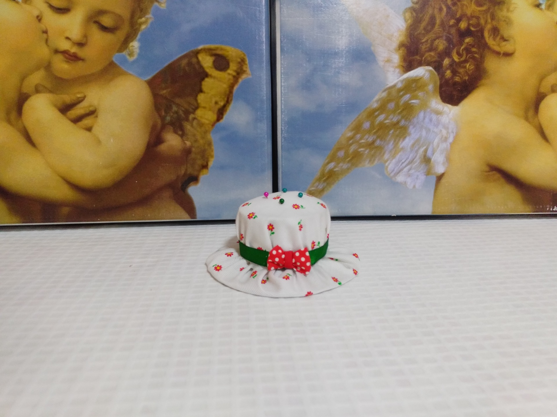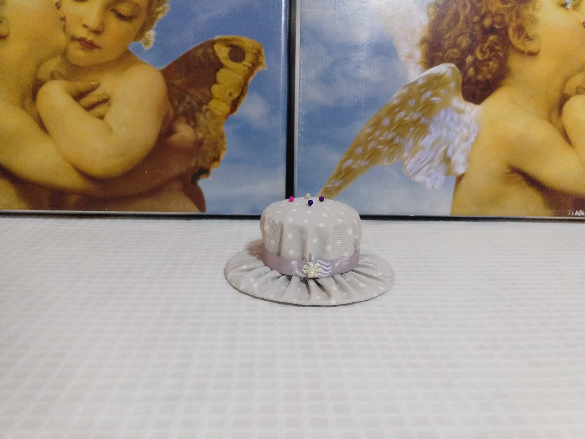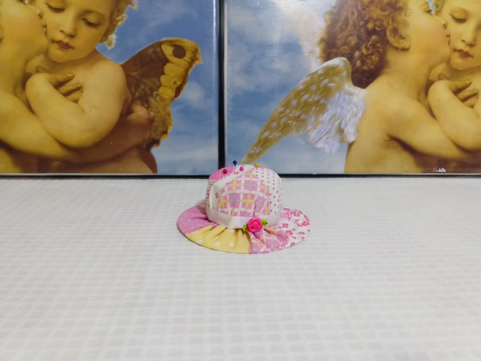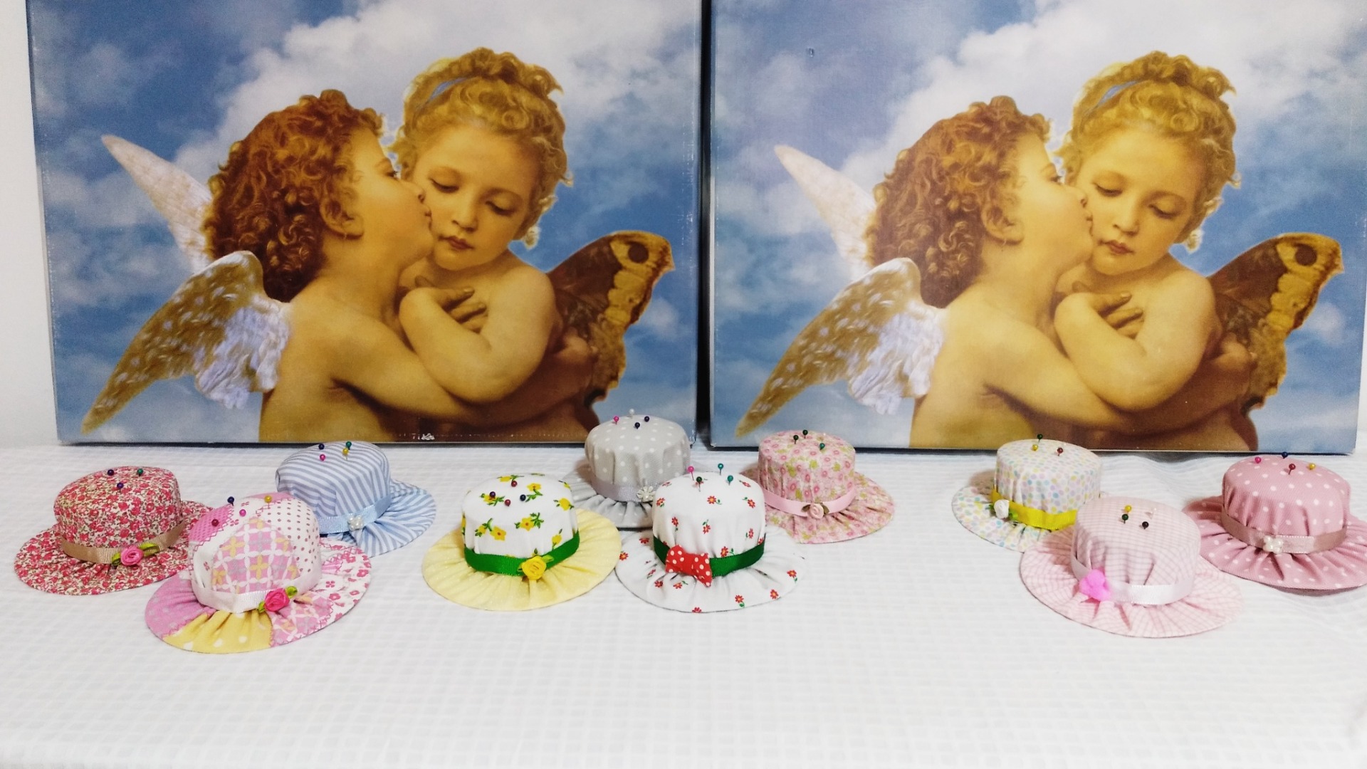 Bolsita azul riveteada con bies de cuadritos azules de vichy, con tela plastificada y con un adorno azul 8,99 € 0,00 €