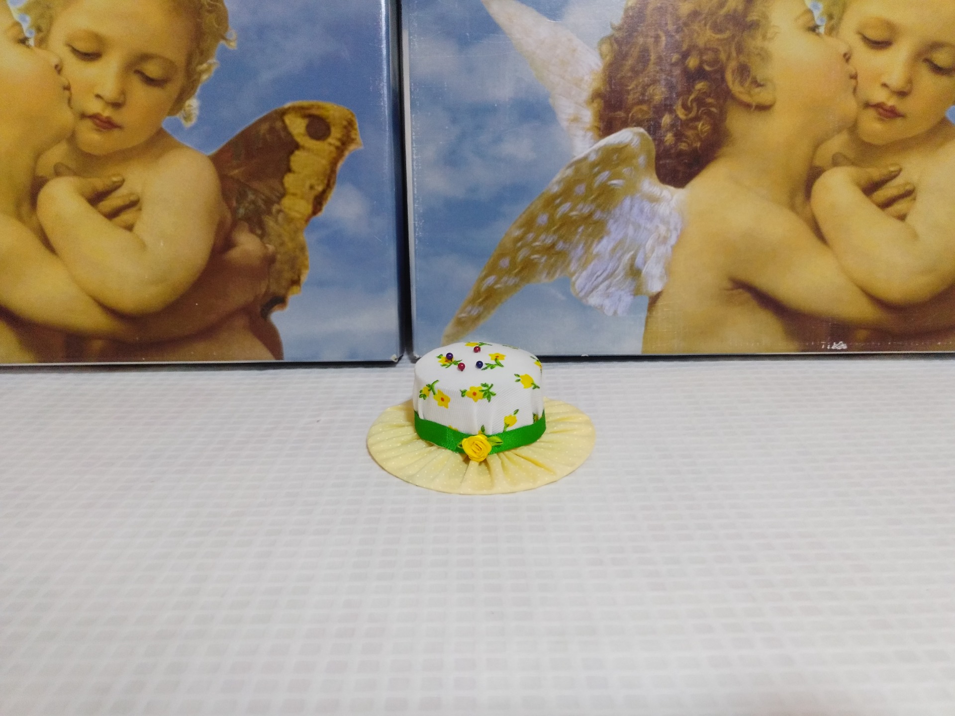 Sombrerito combinado blanco y amarillo estampado de florecitas amarillas y lacito verde 6,99 € 0,00 €