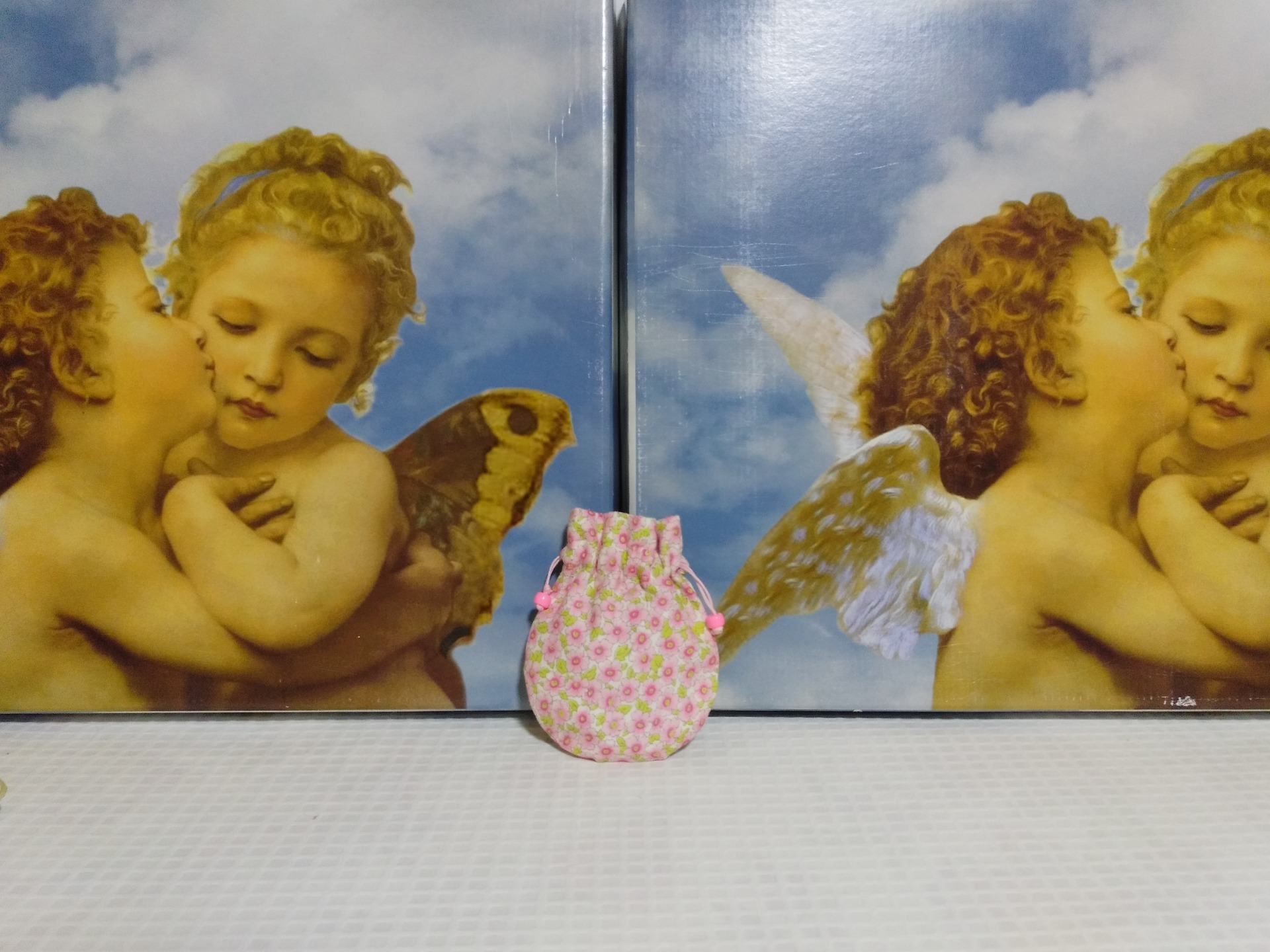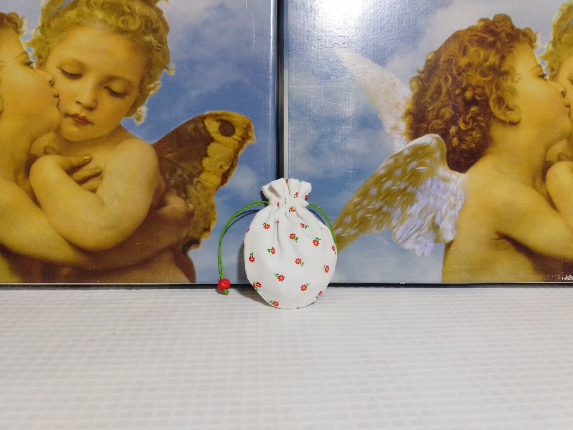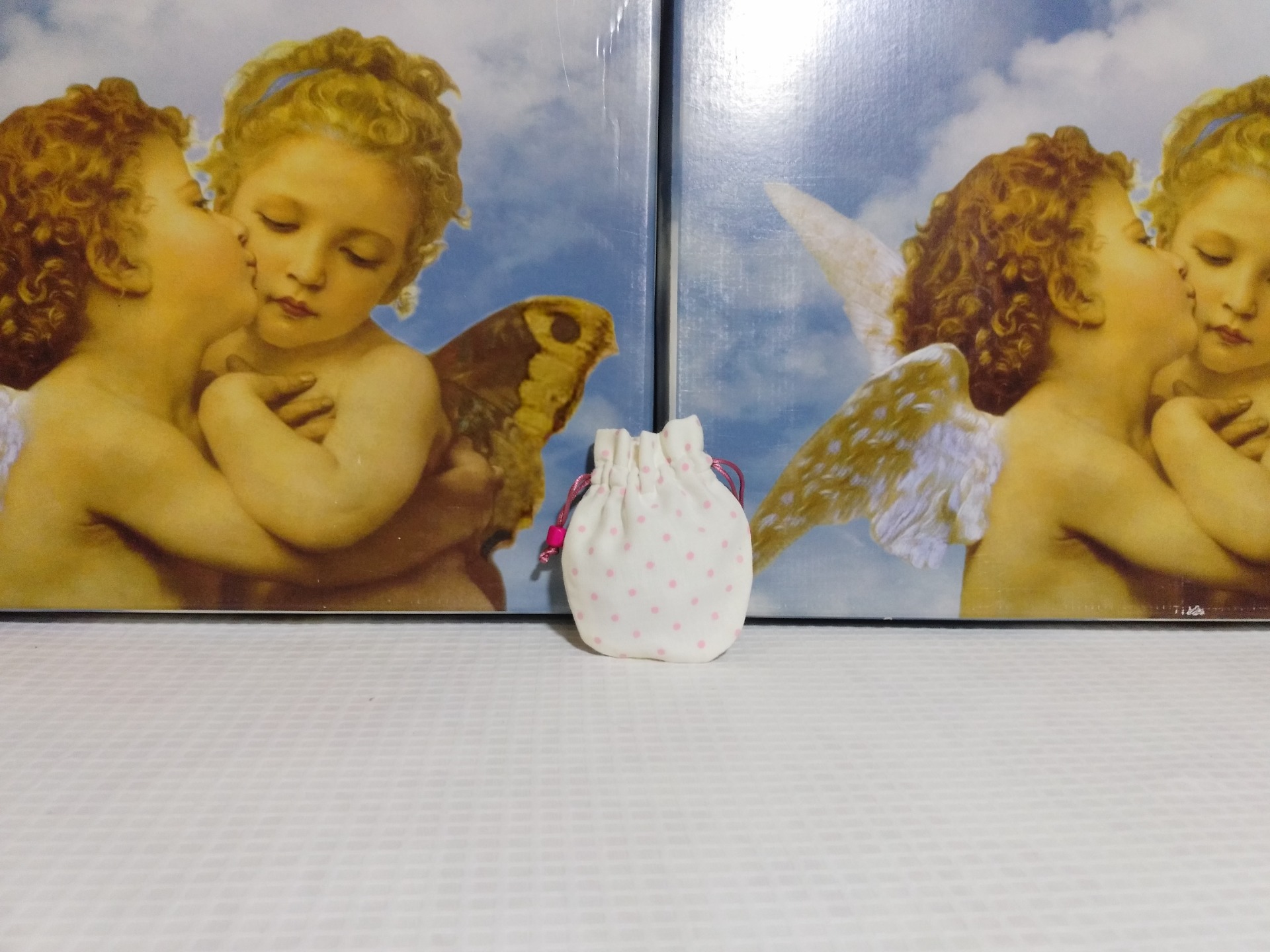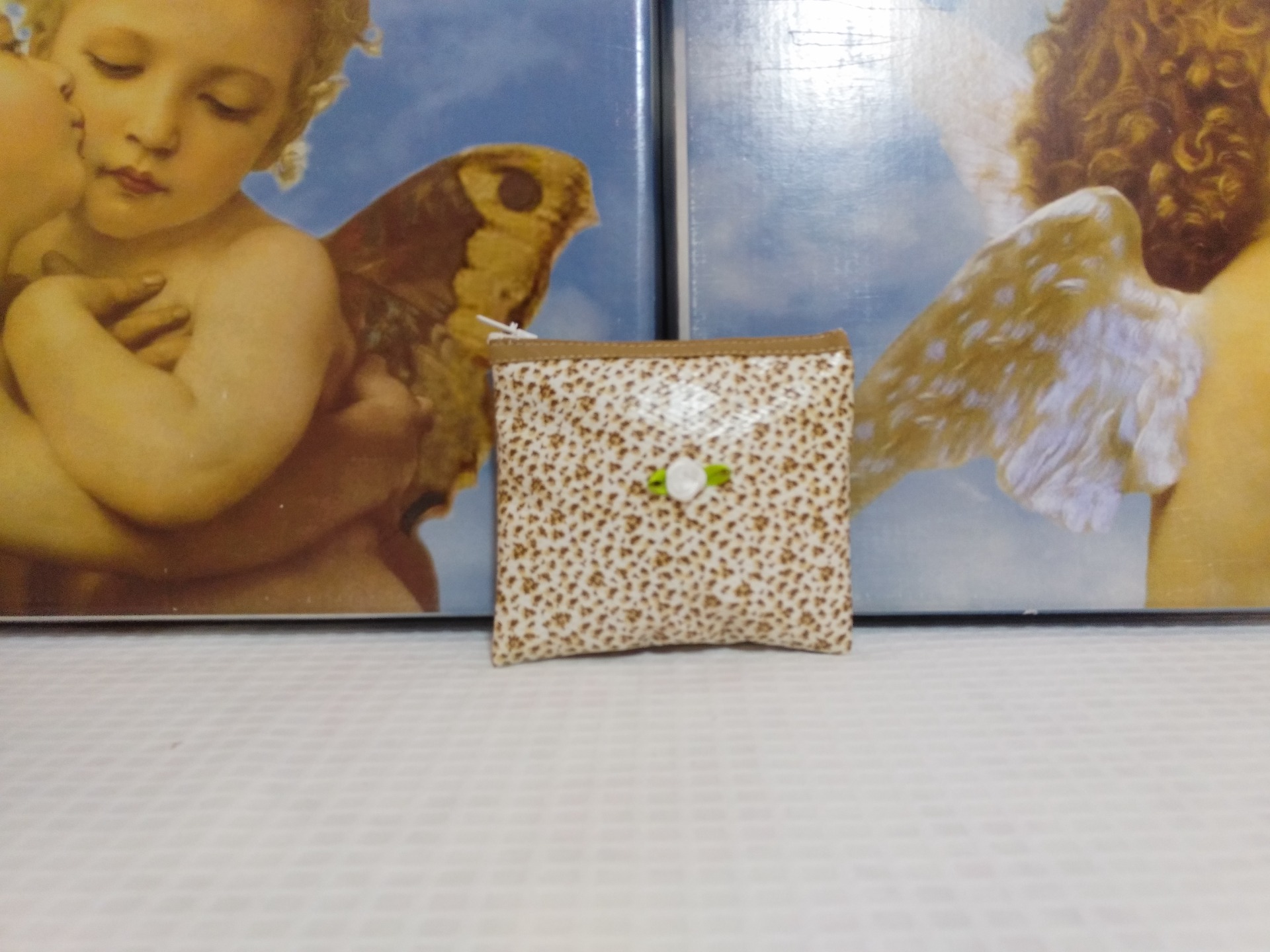 Bolsita azul riveteada con bies de cuadritos azules de vichy, con tela plastificada y con un adorno azul 8,99 € 0,00 €